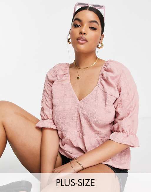 River Island Plus – Gerafftes Schößchenoberteil in Rosa