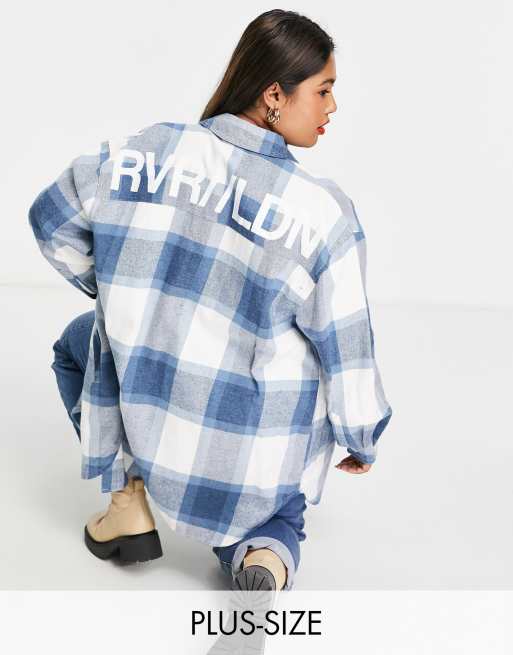 River Island Plus – Karierte Boyfriend-Hemdjacke in Blau