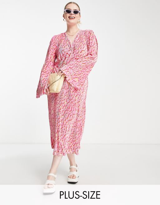 River Island Plus – Midikleid mit Tierfellmuster in Rosa
