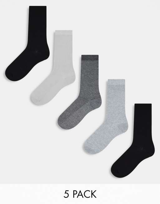 River Island – 5er-Pack gerippte knöchelhohe Socken in meliertem Grau