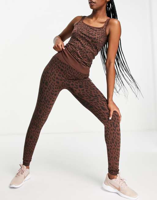 River Island – Active – Nahtloses Trägertop in Braun mit Leopardenmuster, Kombiteil