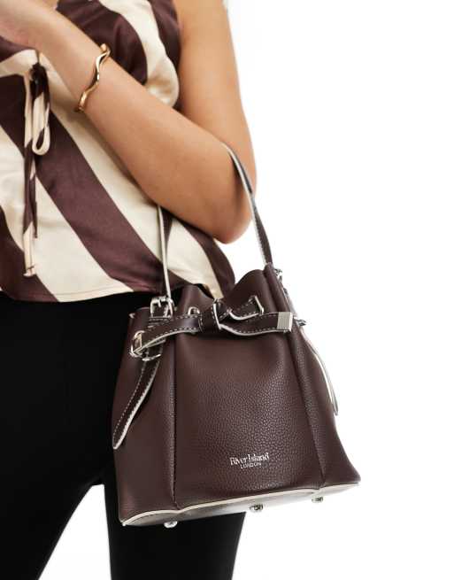 River Island – Beuteltasche in Braun mit zusammengezogenem Rand