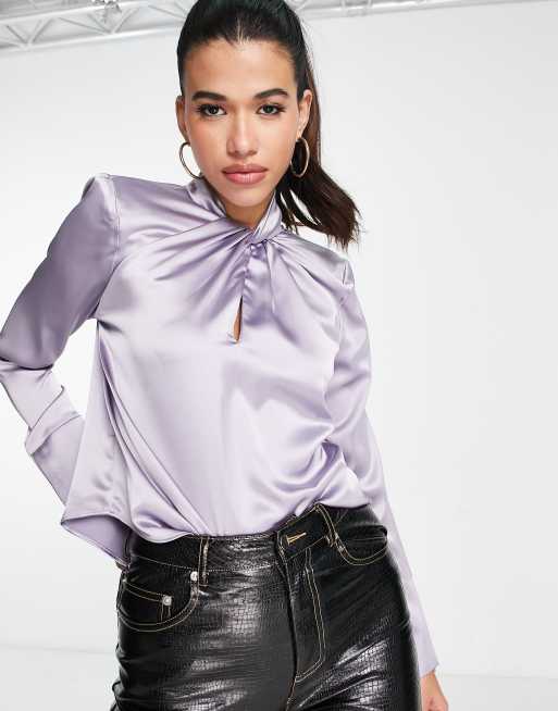 River Island – Bluse in Silber mit verdrehtem Ausschnitt und geteilten Manschetten