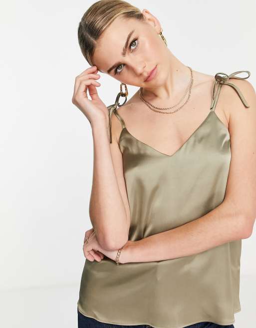River Island – Camisole mit Bindedetail in Grün