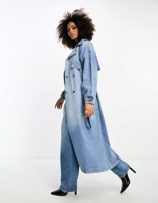 River Island – Denim-Trenchcoat in Blau