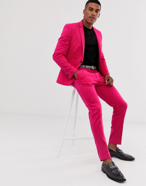 River Island – Enger Anzug in Neonrosa