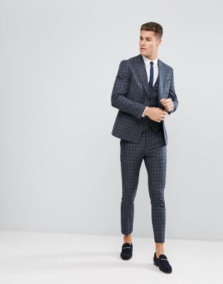 River Island – Enger Anzug mit Karomuster in Dunkelgrau