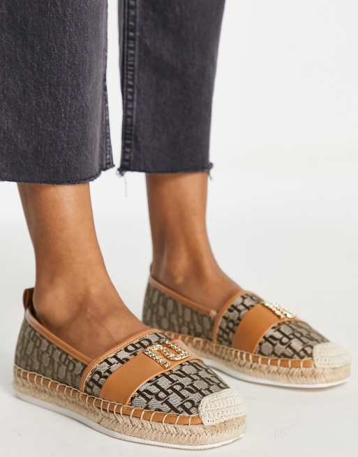 River Island – Espadrilles in dunklem Beige mit Logo