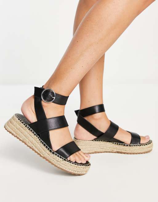 River Island – Espadrilles in Schwarz mit Keilabsatz und Riemchendesign