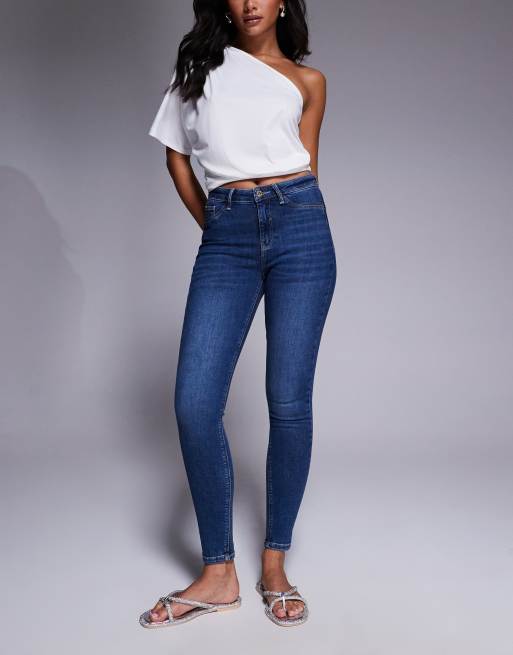 River Island – Figurformende Skinny-Jeans in verwaschenem Dunkelblau mit mittelhohem Bund