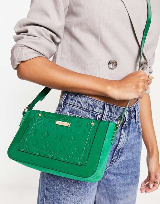 River Island – Geprägte Umhängetasche in Grün