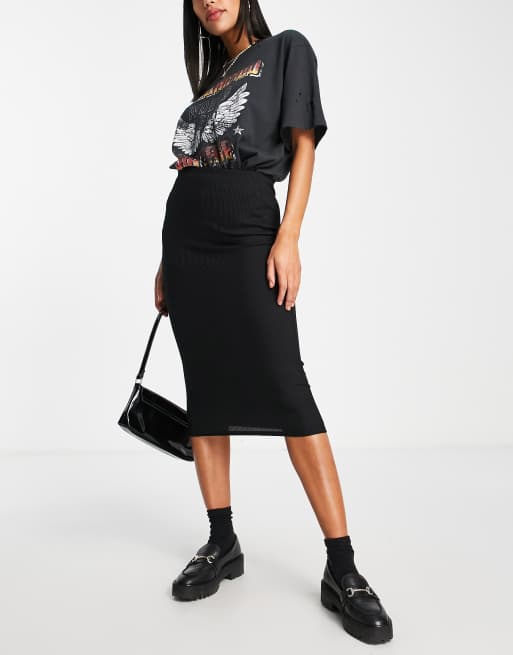 River Island – Gerippter Midi-Schlauchrock in Schwarz