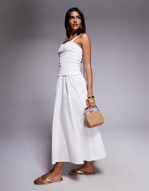 River Island – Gesmoktes Midikleid in Weiß