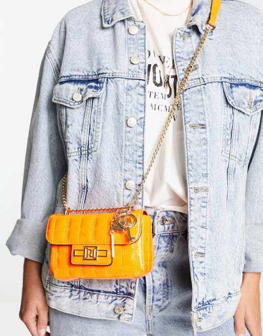 River Island – Gesteppte Mini-Schultertasche in Orange