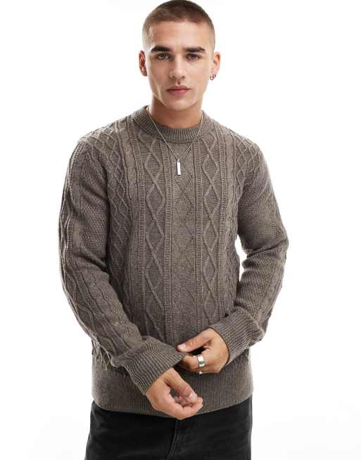 River Island – Grobstrick-Pullover in Steinbeige mit Zopfmuster