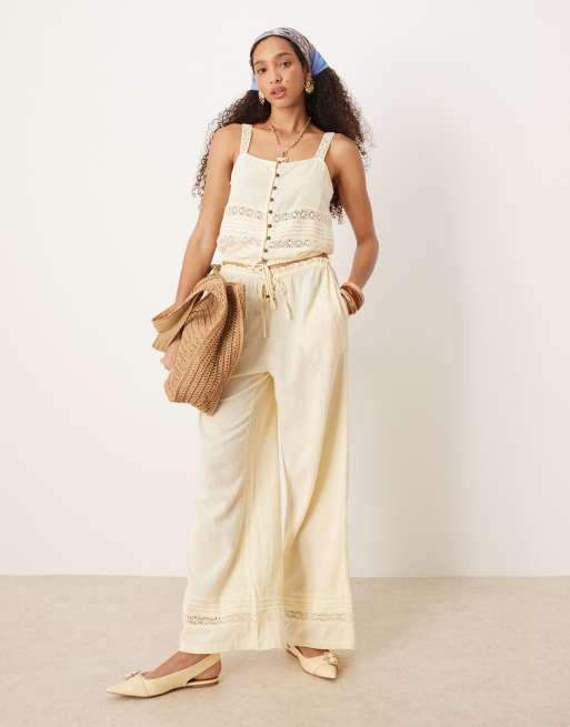 River Island – Hose in Hellgelb mit Knitterstruktur, Kombiteil