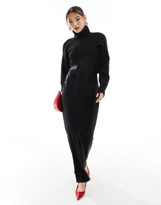 River Island – Hybrid-Maxikleid aus Satin in Schwarz
