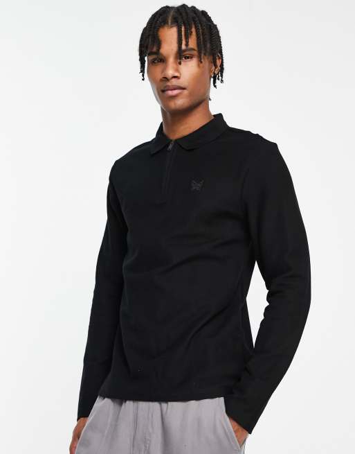 River Island – Langärmliges, enges Poloshirt in Schwarz