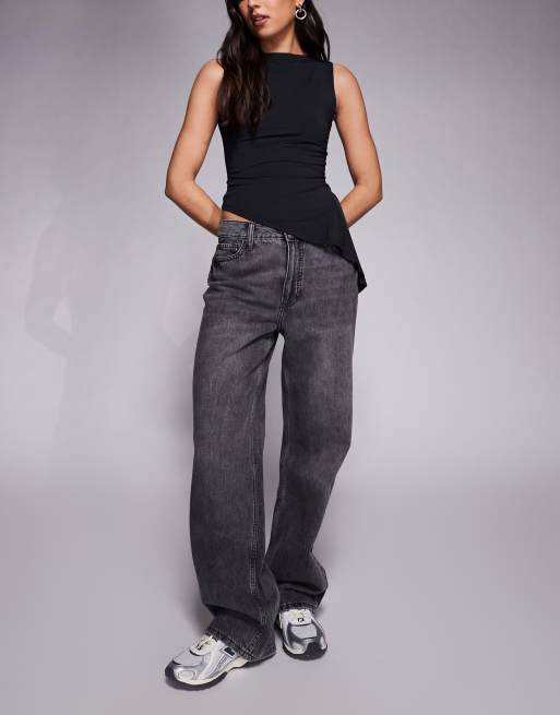 River Island – Locker geschnittene Jeans in Schwarz mit geradem Bein