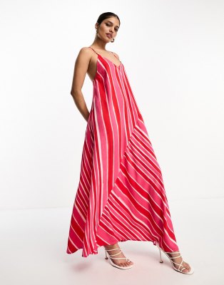 River Island – Maxi-Trägerkleid in Rosa mit asymmetrischen Streifen