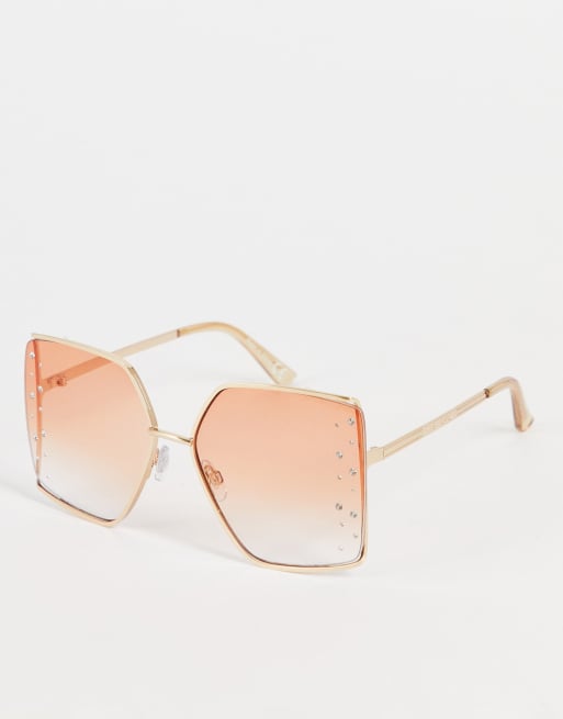 River Island – Oversize-Sonnenbrille in Orange mit Farbverlauf und Schmucksteinen