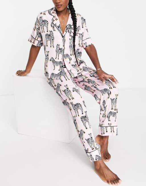 River Island – Pyjama-Set in Rosa mit Zebramuster und dazu passendem Scrunchie