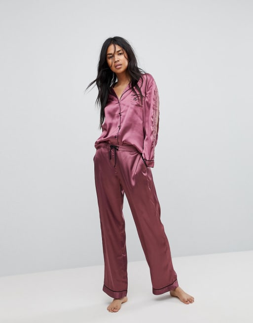 River Island – Pyjama-Set mit Spitzeneinsatz