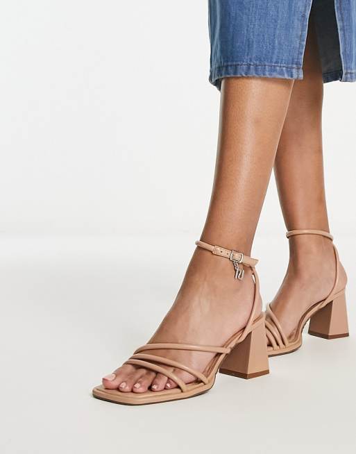 River Island – Riemchen-Sandaletten in Beige mit Blockabsatz