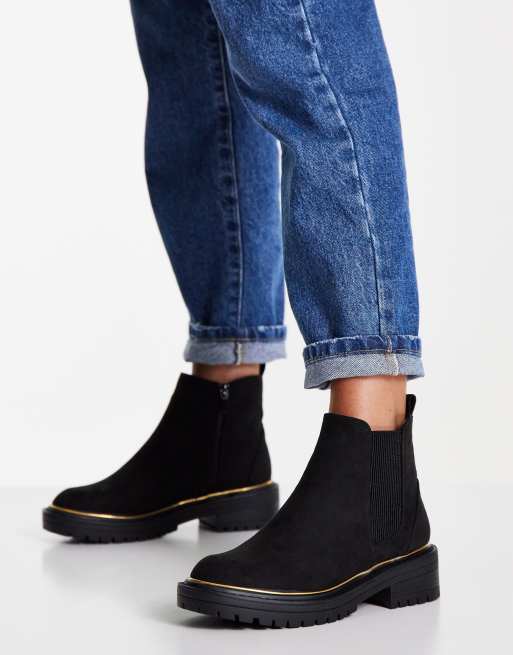 River Island – Robuste Stiefel aus schwarzem Wildlederimitat mit Absatz