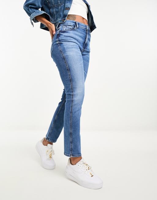 River Island – Schmal geschnittene Jeans in Blau mit hohem Bund