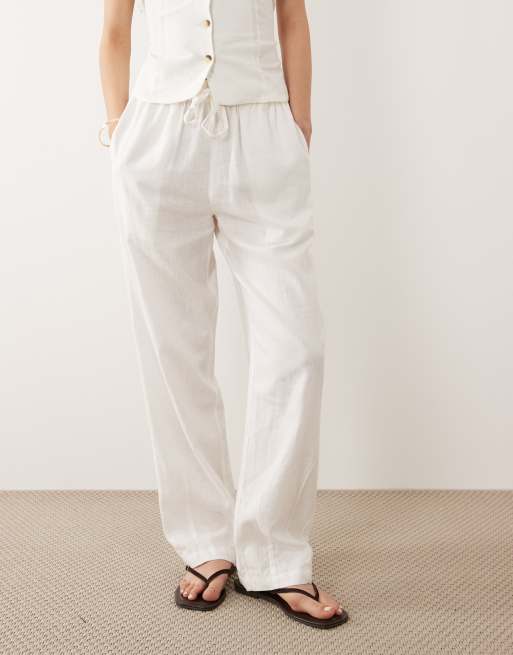 River Island – Schmal zulaufende Leinenhose in Weiß