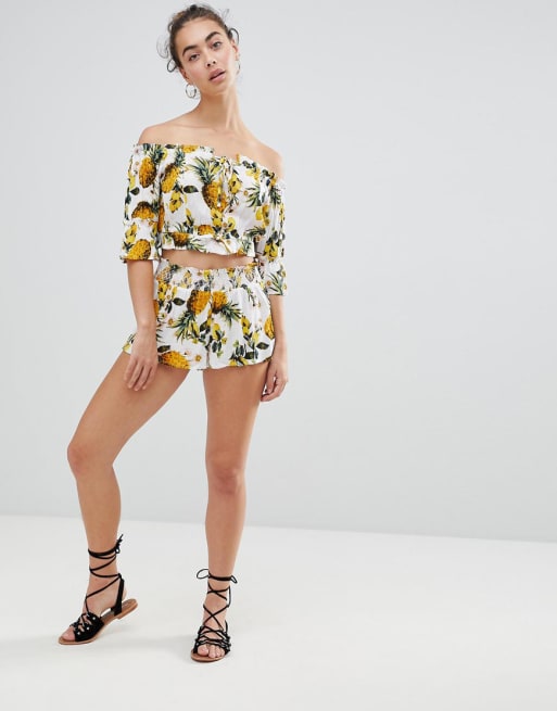 River Island – Schulterfreies Strandset mit Ananasmuster