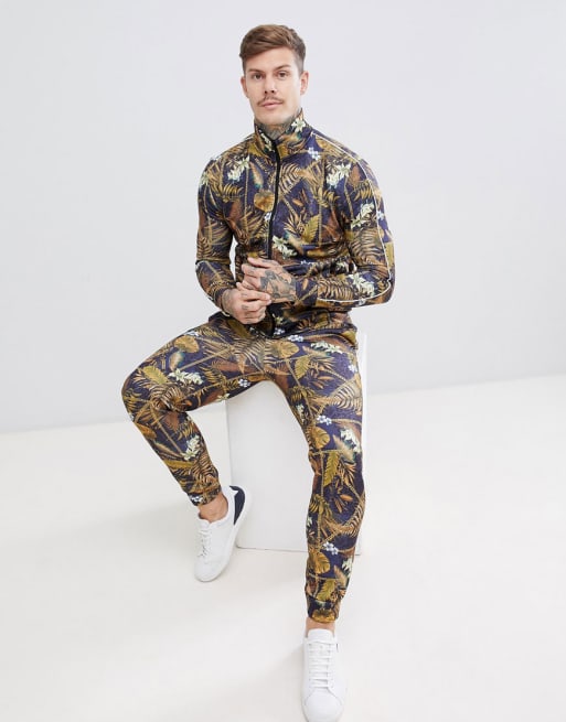 River Island – Schwarzer Trainingsanzug mit Reißverschluss und Kettenmuster