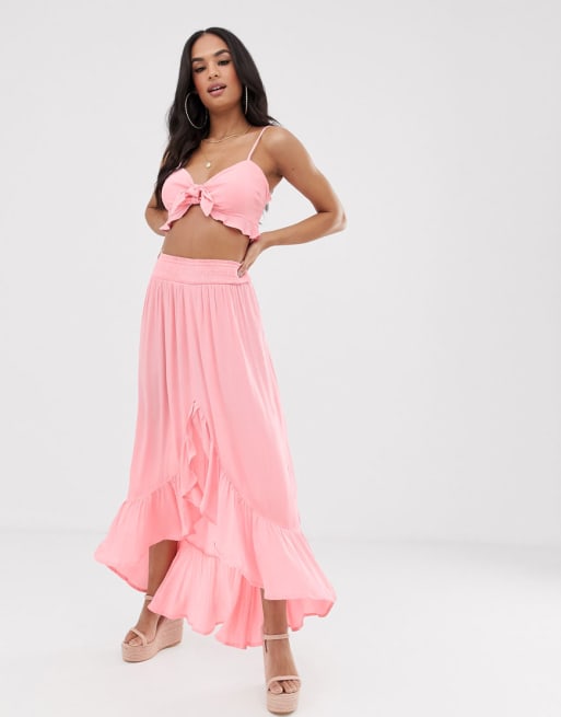 River Island – Strandset in Rosa mit kurzem Oberteil und Rock