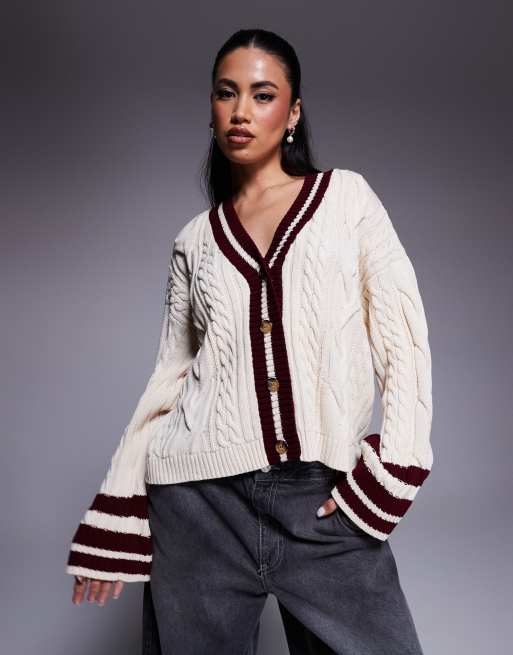 River Island – Strickjacke im Cricket-Stil in Weiß