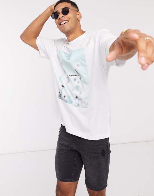 River Island – T-Shirt in Weiß mit geblümtem Einsatz aus Satin