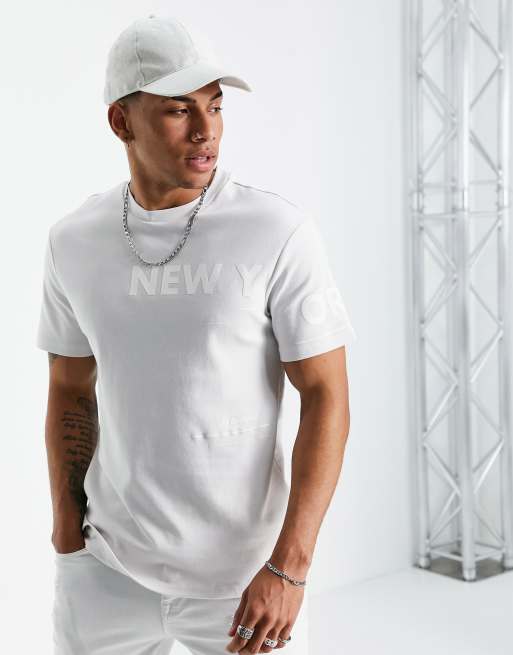 River Island – T-Shirt mit seitlichem „New York“-Print in Grau