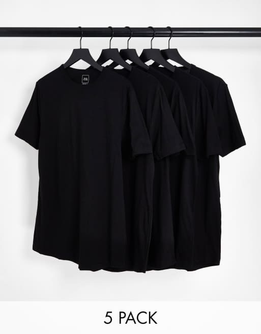 River Island – T-Shirts in Schwarz im 5er-Pack
