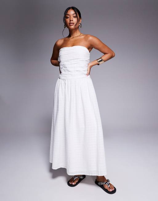 River Island – Trägerloses Midikleid in Weiß mit tiefer Taille