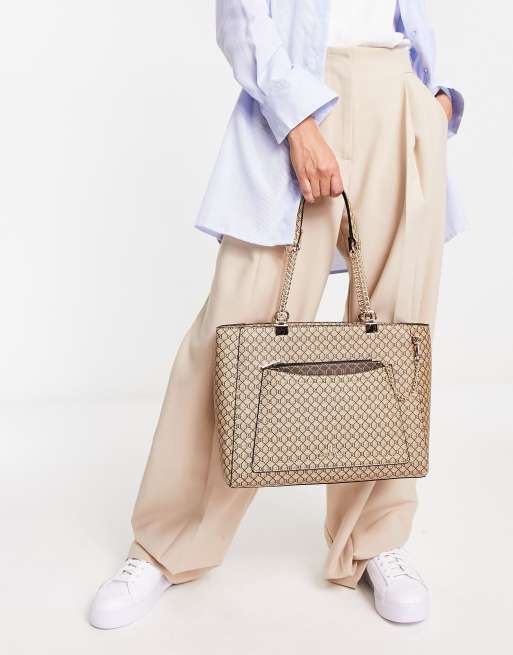 River Island – Tragetasche in Braun mit Monogrammmuster und Außentasche