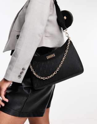 River Island – Umhängetasche aus schwarzem Jacquard mit Monogram