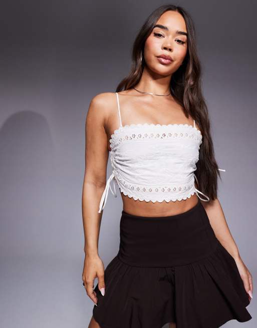 River Island – Verziertes Camisole in Weiß mit seitlicher Schnürung