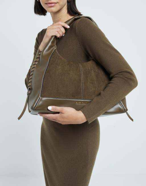 River Island – Weiche Tasche in Khaki mit Überwendlingsstich