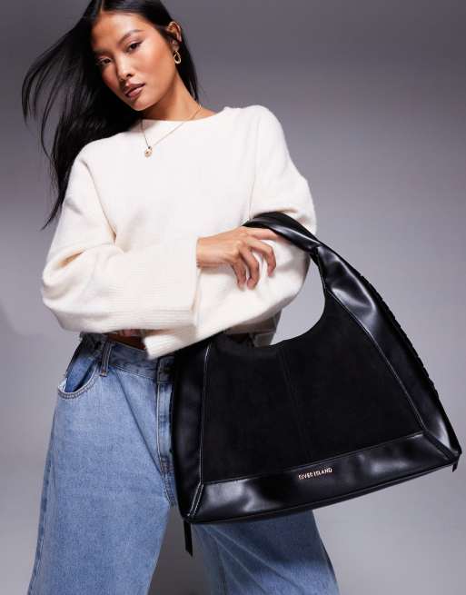 River Island – Weiche Tasche in Schwarz mit Überwendlingsstich