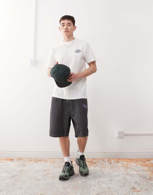 Santa Cruz – Denim-Shorts in verwaschenem Schwarz mit großem UFO-Stickereidetail