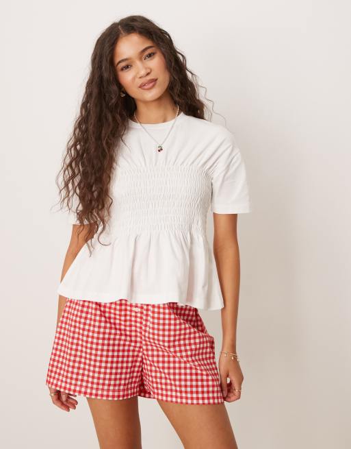 Scalpers – Gesmoktes T-Shirt in Wollweiß