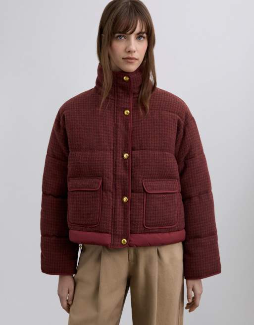 Scalpers – Karierte, kurze Pufferjacke in Terrakotta