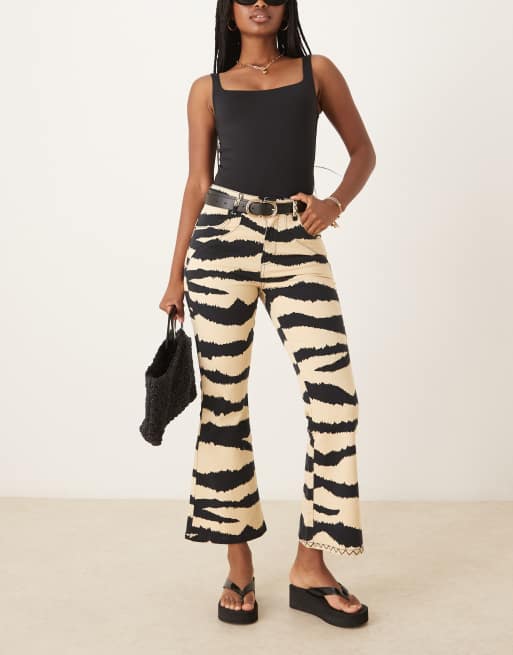 Scalpers – Knöchellange Denim-Hose mit Zebra-Print