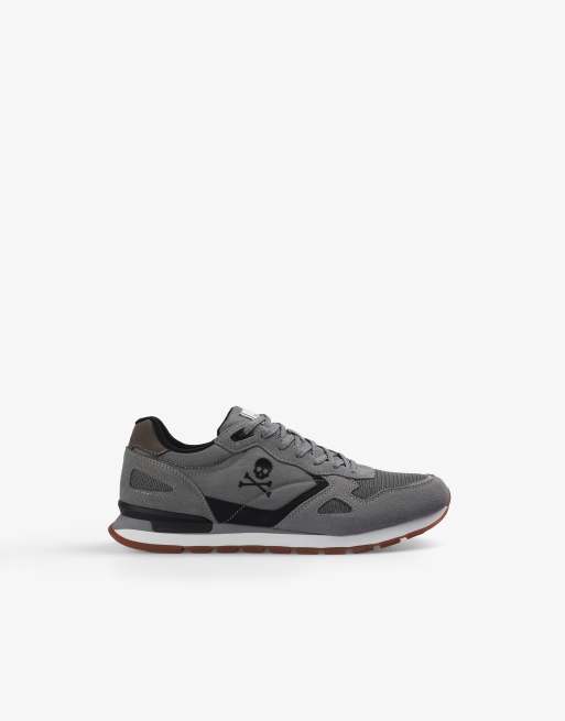 Scalpers – Leder-Sneaker in Grau mit Totenkopfmotiv