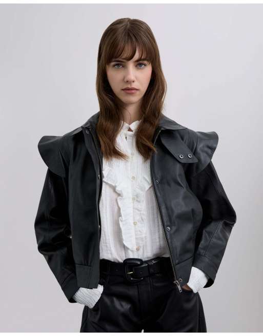 Scalpers – Lederjacke in Schwarz mit Rüschen